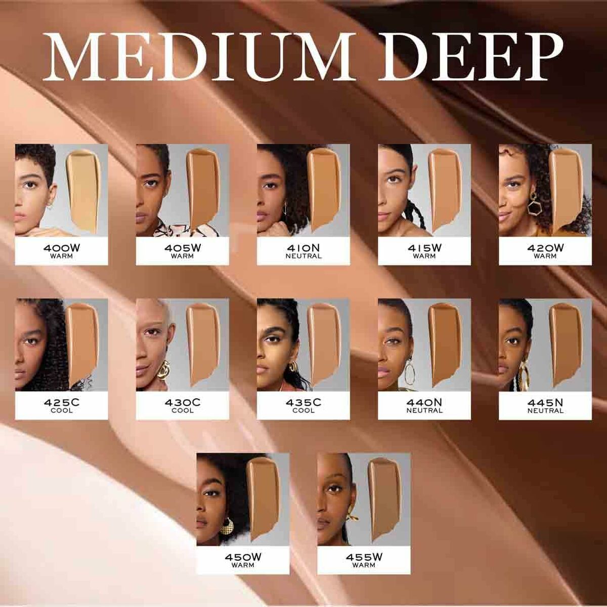 Base fluida de longa duração com acabamento mate natural, desenvolvida para peles de tom médio com subtom quente/amarelo. Esta fórmula proporciona até 24 horas de cobertura total, mantendo a pele com um aspeto uniforme, suave e natural ao longo do dia. Enriquecida com ácido hialurónico, vitamina E e extrato de sementes de moringa, protege a pele das agressões externas e proporciona uma sensação de frescura e leveza.